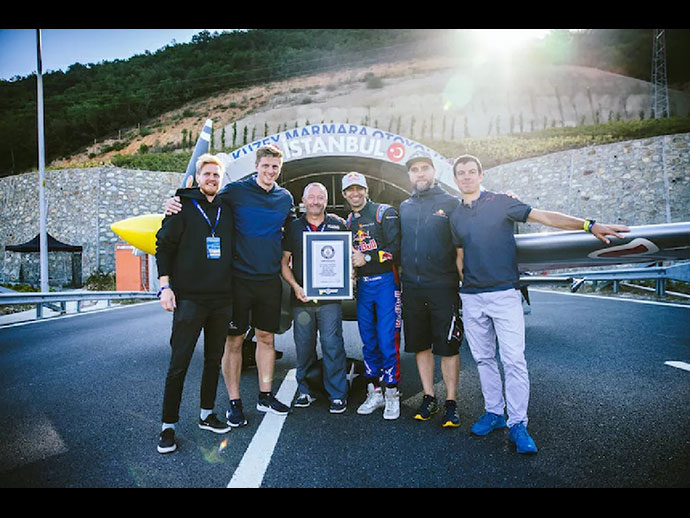 หลังใช้เวลาเตรียมการนานกว่า 1 ปี กับทีมงาน Red Bull 40 ชีวิต ดาริโอ กอสตา นักบินผาดโผนชาวอิตาลีวัย 41 ปี ประสบความสำเร็จในการขับ Zivko Edge 540 เครื่องบินแข่งที่ดัดแปลงมาเพื่อการนี้ บินเหนือพื้นถนนลอดใต้อุโมงค์กาทัลกา หรือที่เรียกชื่อ T1 กับ T2 บนทางหลวงมาร์มาราเหนือ ชานนครอิสตันบูล ประเทศตุรกี