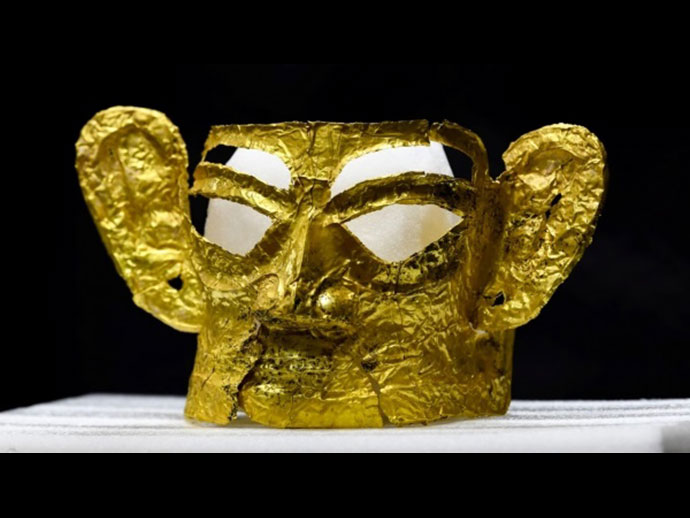 จีนขุดพบหน้ากากทองคำ สภาพสมบูรณ์ อายุเก่าแก่กว่า 3 พันปี ในหลุมบูชายัญ ที่โบราณสถานซานซิงตุยในมณฑลเสฉวน นอกจากนั้นยังพบวัตถุโบราณอื่นๆ กว่า 500 ชิ้น