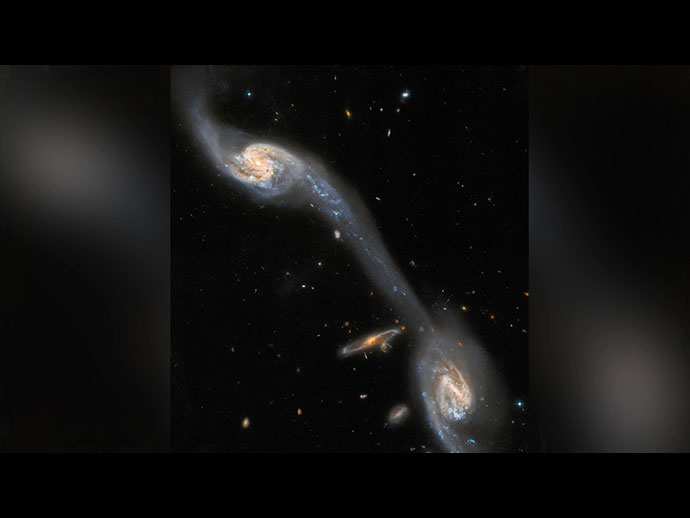 ภาพล่าสุดก็คือกาแล็กซี 2 แห่งในกลุ่มกาแล็กซีแฝดสามที่ชื่อ Arp 248 หรือเรียกว่า “Wild's Triplet” อยู่ห่างจากโลกประมาณ 200 ล้านปีแสง ตั้งอยู่ในกลุ่มดาวหญิงสาว มีลักษณะเป็นกาแล็กซีชนิดก้นหอยหรือทรงกังหันขนาดใหญ่ 2 แห่งแลคล้ายว่ากำลังถูกเชื่อมต่อกันด้วยสะพานเรืองแสง อันเป็นกระแสธารอันยาวยืดของดวงดาวและฝุ่นระหว่างดวงดาว เกิดขึ้นจากแรงดึงดูดซึ่งกันและกันของกาแล็กซีทั้ง 2 แห่งนั่นเอง