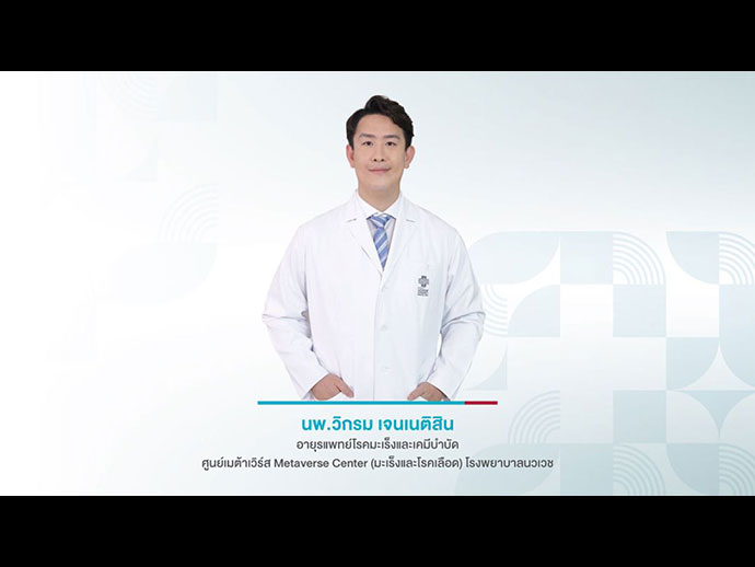 หากมีข้อสงสัยเกี่ยวกับโรคมะเร็งและเคมีบำบัด สามารถสอบถามรายละเอียดและขอรับคำปรึกษาได้ที่ ศูนย์เมต้าเวิร์ส Metaverse Center (มะเร็งและโรคเลือด) โรงพยาบาลนวเวช โทร. 02-4839999 I Line : @navavej Iwww.navavej.com