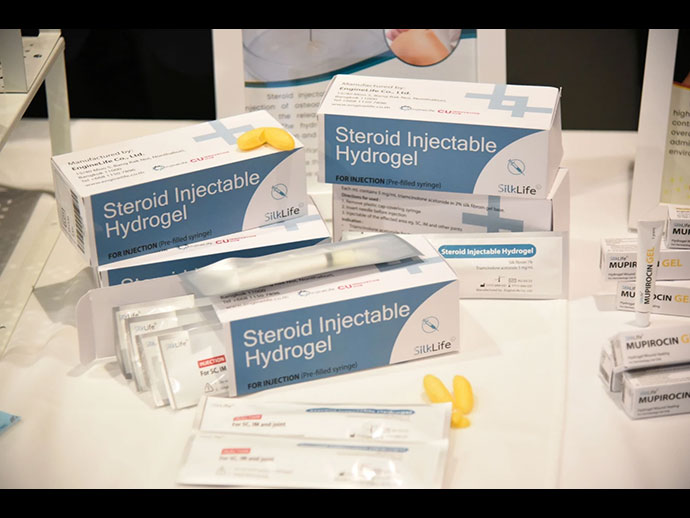 ปริมาณที่เหมาะสม แต่เนิ่นนานขึ้น ส่งเสริมให้ตัวยายังคงมีประสิทธิภาพในการรักษานานขึ้น และลดความถี่ของการฉีดยาสเตียรอยด์ได้ นอกจากนี้ไหมไทยยังสามารถต่อยอด ผลิตเป็นแผ่นแปะช่วยผ่อนคลาย แผ่นไฮโดรเจลนวัตกรรมใหม่ ที่มีไฟโบรอินจากไหมไทยที่ประสิทธิภาพในการช่วยชะลอการปลดปล่อย cannabidiol (CBD) อย่างช้าๆ ซึ่งจะช่วยผ่อนคลาย ลดความเครียด ช่วยให้นอนหลับง่าย และช่วยให้การนอนหลับลึกขึ้น โดยมีผลการทดสอบทางวิทยาศาสตร์รองรับ รวมถึงผ่านการทดสอบทางผิวหนัง และการผลิตอยู่ภายใต้มาตรฐาน GMP
