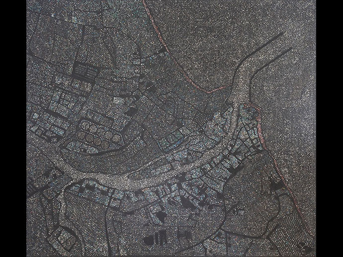 นางสาวปรัชญา เจริญสุข ศิลปินหญิง กล่าวว่า มีประสบการณ์ทำงานศิลปะจากขยะทะเลมา 4 ปี แต่ใช้ขยะชิ้นใหญ่ทำงานศิลปะ ก่อนจะเห็นข่าวพบไมโครพลาสติกในกระเพาะปลาทูไทย รู้สึกสะเทือนใจอยากส่งต่อความรู้สึกนี้ผ่านการสร้างสรรค์ผลงาน” ปากน้ำชุมพร” เลือกโลเกชั่นปากน้ำชุมพร เพราะเป็นพื้นที่อยู่อาศัยของชุมชนและมีคูคลองไหลลงสู่ทะเล ผลงานเป็นการสำรวจร่องรอยที่มนุษย์ทิ้งไว้ในปัจจุบันผ่านไมโครพลาสติกที่ร่อนจากทรายชายหาดในบ้านเกิดของตนเพื่อเก็บ ร่อน ทำการคัดแยกแยกไมโครพลาสติกขนาดเล็กกว่า 5 มิลลิเมตร และนำมาติดเรียงเป็นภาพมุมสูงปากน้ำชุมพร ซึ่งมีทีมงานเป็นพ่อกับแม่ช่วยร่อนเศษไมโครพลาสติกด้วย ตนใช้เวลากว่า 2 เดือน สร้างงานชิ้นนี้ หวังให้งานศิลปะสร้างการเปลี่ยนแปลงสังคม