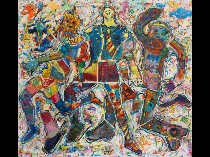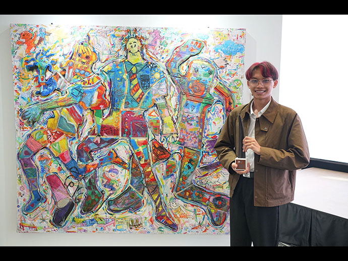 ผลงาน “Joy” ด้วยเทคนิคสื่อผสมบนผ้าใบ
