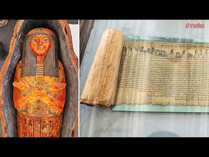 ส่วนหนึ่งของวัตถุโบราณที่ค้นพบจากสุสานแห่งนี้เป็น “กระดาษปาปิรุส” สภาพสมบูรณ์ดี ความยาวราว 16-18 เมตร จากการศึกษาเบื้องต้นพบการบันทึกข้อความเกี่ยวกับ “คัมภีร์มรณะ” (Book of the Dead) และโลงศพไม้แกะสลักทาสีของลูกสาวของ “มหาปุโรหิตดเจฮูติ” (Djehuti) เทพเจ้าอียิปต์โบราณ