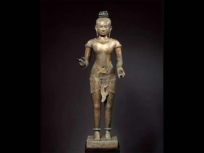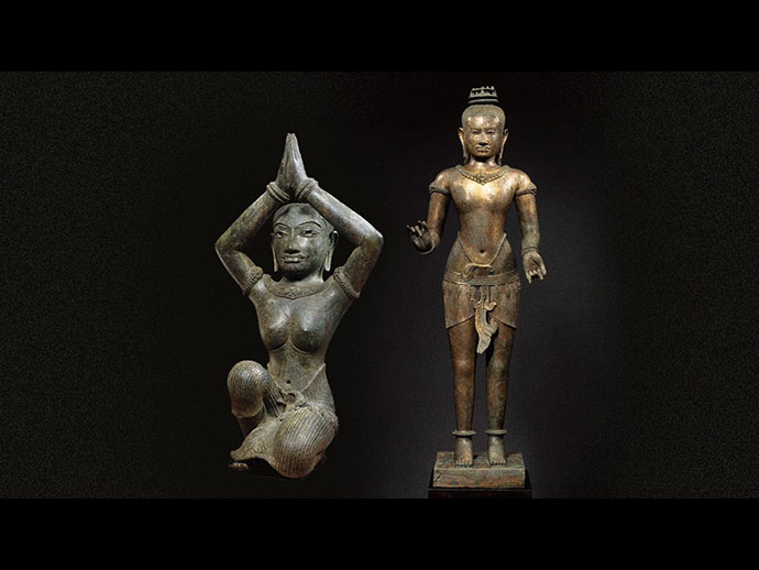 สำหรับโบราณวัตถุที่จะได้รับกลับคืนครั้งนี้ ประกอบด้วย ประติมากรรมพระศิวะ อายุราวพุทธศตวรรษที่ 16 เป็นรูปพระศิวะสวมเครื่องทรงแบบบุคคลชั้นสูง ถือเป็นโบราณวัตถุชิ้นเยี่ยม ซึ่งพบไม่มากนัก ประติมากรรมนี้สูงถึง 129 เซนติเมตร มีเทคนิคการสร้างแบบพิเศษคือหล่อด้วยสำริดและกะไหล่ทอง ส่วนประติมากรรมสตรี อายุราวพุทธศตวรรษที่ 16 เช่นกัน สูง 43 เซนติเมตร อยู่ในท่านั่งชันเข่าและยกมือไหว้เหนือศีรษะ แต่งกายแบบบุคคลชั้นสูง หล่อด้วยสำริด มีร่องรอยการประดับด้วยโลหะเงินและทอง