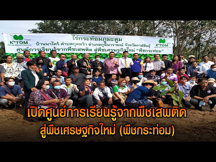 ที่ไร่กระท่อมภูมะตูม ต.กุดหว้า อ.กุฉินารายณ์ จ.กาฬสินธุ์ นายทรงพล ใจกริ่ม ผวจ.กาฬสินธุ์ ลงพื้นที่พบปะ และตรวจเยี่ยมให้กำลังใจเกษตรผู้ปลูกกระท่อม พร้อมทั้งเปิดศูนย์การเรียนรู้จากพืชเสพติด สู่พืชเศรษฐกิจใหม่ (พืชกระท่อม) โดยมีนายสนัด วงศ์ทวีทอง รองผู้อำนวยการอุทยานวิทยาศาสตร์ประเทศไทย สำนักงานพัฒนาวิทยาศาสตร์และเทคโนโลยีแห่งชาติ ดร.นพดล โปธิตา ประธานกรรมการบริษัท กระท่อม อินโนเวชั่น จำกัด นายวิทยาธร บุญไกรสร ประธานที่ปรึกษาบริษัท กระท่อม อินโนเวชั่น จำกัด และเกษตรกร รวมกิจกรรม