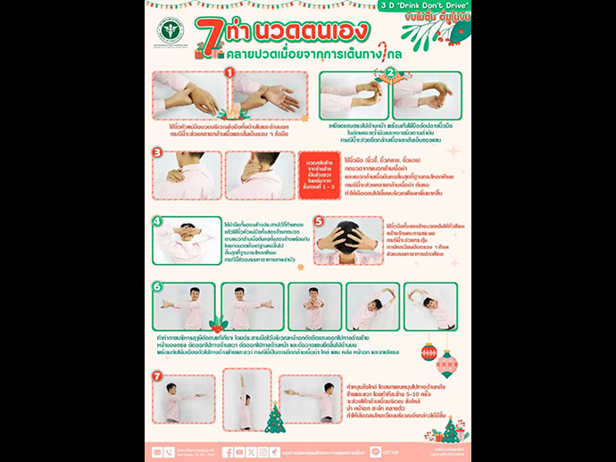กรมการแพทย์แผนไทยและการแพทย์ทางเลือก แนะนำ 7 "ท่านวด" ตนเอง ช่วยบรรเทาอาการปวดเมื่อยระหว่างการเดินทางไกล ช่วงหยุดยาวเทศกาลปีใหม่ 2567