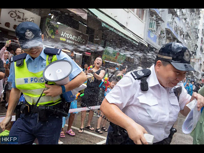 เมื่อวันที่ 8 เมษายน 2567 สำนักข่าว Hong Kong Free Press ของฮ่องกง รายงานข่าว After arrests in 2023, Hong Kong’s Songkran water-splashing festival moved off the streets ระบุว่า ทางการฮ่องกงไม่อนุญาตให้จัดงานเทศกาลสงกรานต์ ประจำปี 2567 บนท้องถนน ซึ่งเป็นประเพณีที่จัดกันมาอย่างยาวนานในบริเวณถนนกำแพงใต้ (South Wall Road) เขตเกาลูน เนื่องจากบริเวณดังกล่าวเป็นชุมชนของชาวไทยที่อาศัยอยู่ในฮ่องกง ทำให้ในทุกๆ ปี จะมีการเล่นสาดน้ำกันบนนถนนสายนี้อย่างสนุกสนาน