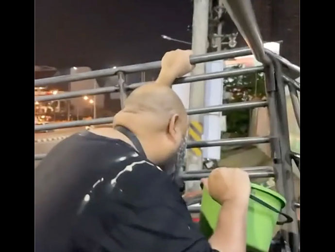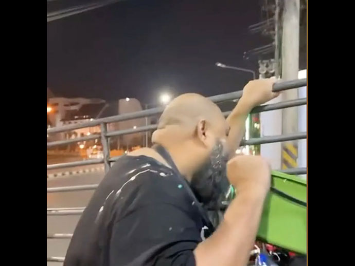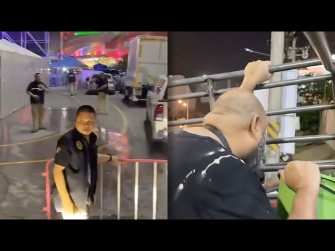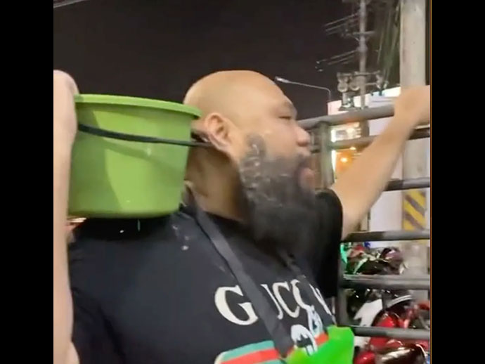 โดยในคลิป เผยให้เห็นภาพของ กอล์ฟ ฟักกลิ้งฮีโร่ ถือถังน้ำยืนอยู่ในรถคอก เพราะก่อนที่จะมาขึ้นเวที เจ้าตัวไปวนรอบคูเมืองมาก่อนจะขึ้นร้องเพลง ซึ่งในคลิปมีเสียงพูดว่า