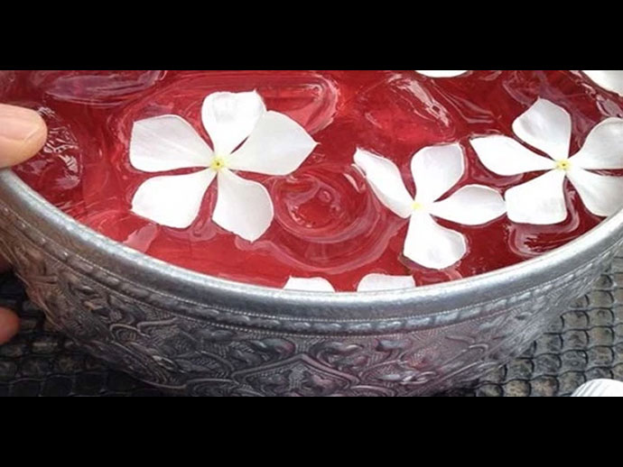 เป็นเครื่องดื่มที่คลาสสิคมาก เชื่อว่าหลายคนน่าจะเคยดื่ม แค่เอาดอกมะลิ แช่ไว้กับน้ำ แค่นี้ก็ได้เครื่องดื่มหอมๆ ไว้ดับร้อนแล้ว ที่ขาดไม่ได้เลยคือ เพิ่มความสดชื่นด้วยขันสีเงิน แถม มะลิ มีสรรพคุณช่วยร้อนใน และแก้วิงเวียนได้อีกด้วย