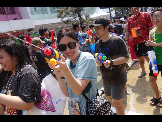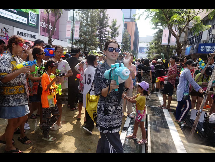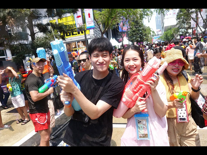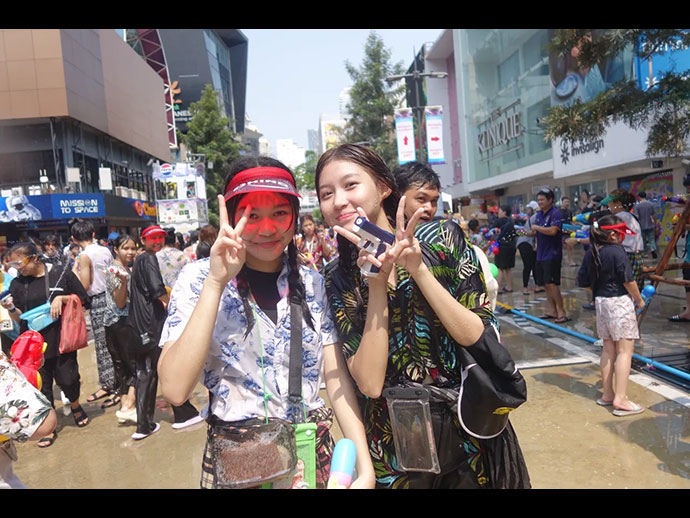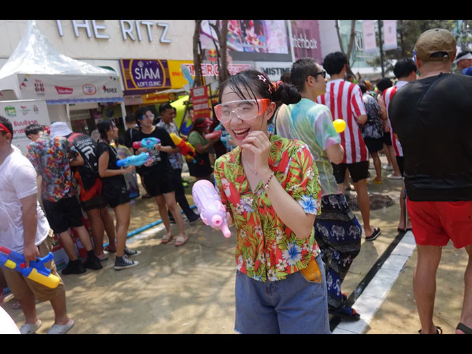 บรรยากาศการเล่นน้ำสงกรานต์ วันที่สอง บริเวณพื้นที่สยามสแควร์ เขตปทุมวัน กทม. ซึ่งมาในธีม “สงกรานต์สยาม ผ้าขาวม้า อยู่เย็นเป็นสนุก” เป็นไปอย่างคึกคัก โดยมีนักท่องเที่ยวชาวไทยและชาวต่างชาติรวมตัวเล่นน้ำชุ่มฉ่ำไปด้วยความสุข แม้ว่าสภาพอากาศจะร้อนจัดก็ตาม