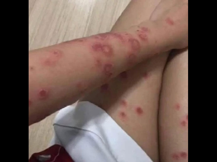เริ่มมีผื่นแดงขึ้นตามร่างกาย ตามลำตัวหรือแขนขาที่สัมผัส