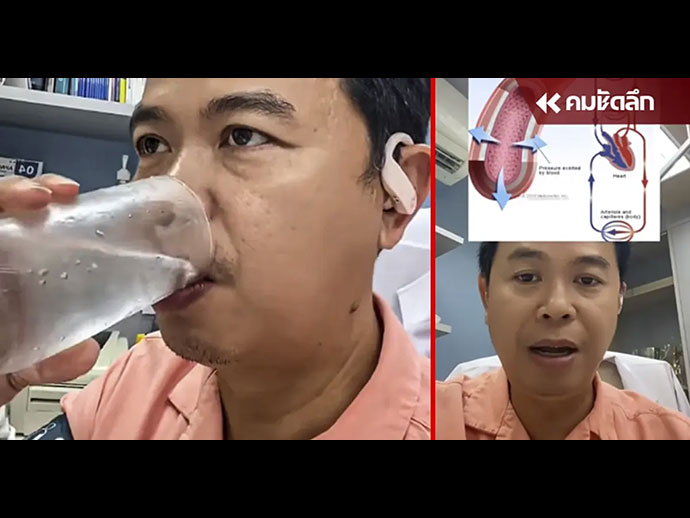 เมื่อทำการวัดความดัน หลังดื่มน้ำเย็น พบว่า ค่าความดันโลหิตขณะหัวใจบีบตัว 127 มิลลิเมตรปรอท ซึ่งค่าความดันไม่ได้เพิ่มขึ้น คุณหมออธิบายว่า การดื่มน้ำเย็นไม่ได้ทำให้ความดันสูงขึ้นแล้วทำให้ เส้นเลือดในสมองแตก อย่างที่มีการแชร์ข้อมูลบนโลกออนไลน์ ซึ่งเป็นความรู้ที่ผิด