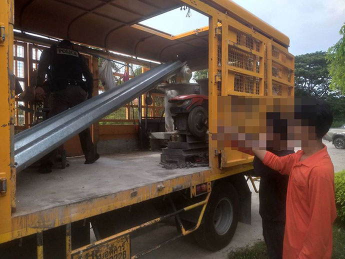 20 พฤษภาคม 2567 เมื่อเวลา 15.30 น. ผู้สื่อข่าวรายงานว่า ร.ต.อ.วันชัย เสริมสุข ร้อยเวร 20 สภ.บ้านฉาง ได้รับแจ้งจากนายสุรศักดิ์ ศิริสุวรรณ นายช่างกรมทาง ว่าพบเห็นพฤติกรรมของคนงานรับเหมาตีเส้นจราจร กำลังก่อเหตุลักราวกันชนของกรมทางบริเวณ ถนนสาย 3376 บ้านฉาง-ชากหมาก พอหลังจากนั้นก็ช่วยกันนำขึ้นรถ 6 ล้อ หมายเลข 82-5792 ปราจีนบุรี ที่เป็นของผู้รับเหมาตีเส้นจราจรซึ่งติดสติกเกอร์ สีสัญลักษณ์กรมทางฯ ขับมุ่งหน้าเข้าเมือง