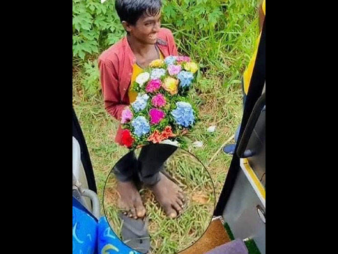 เขาถอดรองเท้าขึ้นมาบนรถบัส เพราะกลัวรถจะเปื้อนด้วยสภาพเหงื่อท่วมตัวและรอยยิ้มที่จริงใจ ทำให้นักท่องเที่ยวซื้อดอกไม้พร้อมกับถ่ายรูปกับเขา และแชร์เรื่องราวนี้ไปยังโลกออนไลน์ สิ่งนี้เองได้กลายเป็นความประทับใจให้ผู้คนที่ได้เห็นคลิปดังกล่าว