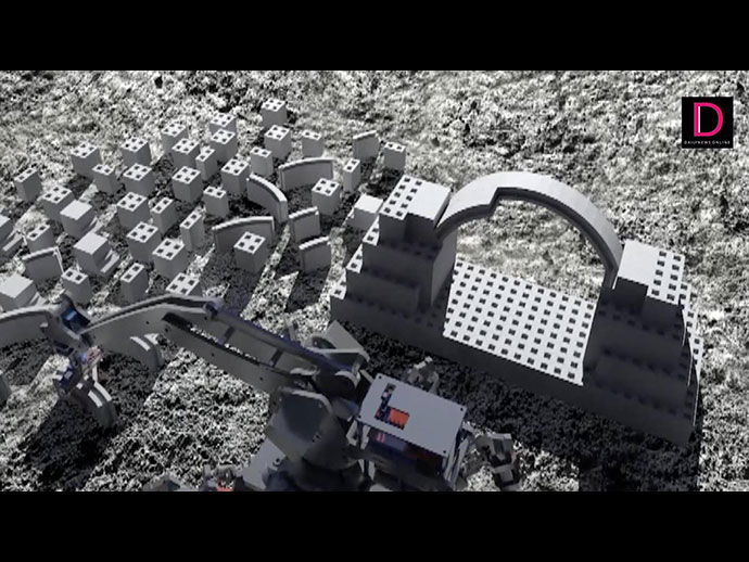 ขณะเดียวกัน ทีมวิจัยยังได้พัฒนาวิธีการสร้างแบบ ที่ใช้เทคโนโลยีการผลิตแบบเพิ่มเนื้อวัสดุ และประดิษฐ์หุ่นยนต์พิมพ์ 3 มิติ เพื่อพิมพ์บ้านโดยใช้ดินดวงจันทร์