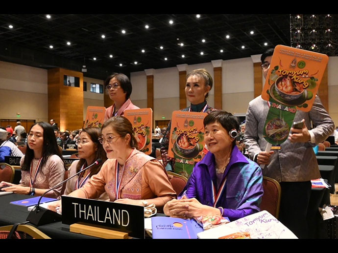 4 ธ.ค. 67 นางสาวสุดาวรรณ หวังศุภกิจโกศล รมว.วัฒนธรรม เปิดเผยว่า ที่ประชุมคณะกรรมการระหว่างรัฐบาลเพื่อการสงวนรักษามรดกวัฒนธรรมที่จับต้องไม่ได้ ครั้งที่ 19 (The nineteenth session of the Intergovernmental Committee for the Safeguarding of the Intangible Cultural Heritage: IGC-ICH) ขององค์การการศึกษา วิทยาศาสตร์และวัฒนธรรมแห่งสหประชาชาติ หรือ UNESCO เมื่อวันที่ 3 ธันวาคม พ.ศ. 2567 ระหว่างเวลา 14.50 - 16.30 น. (เวลาท้องถิ่น) ณ นครอซุนซิออน (Asuncion) สาธารณรัฐปารากวัย หรือตรงกับวันที่ 4 ธันวาคม ระหว่างเวลา 00.50 – 02.30 น. (ของประเทศไทย) มีมติรับรองให้ “ต้มยำกุ้ง” (Tomyum Kung) ขึ้นทะเบียนเป็นรายการตัวแทนมรดกวัฒนธรรมที่จับต้องไม่ได้ของมนุษยชาติ (Representative List of the Intangible Cultural Heritage of Humanity : RL) ประจำปี 2567 ต่อจากรายการ โขน นวดไทย โนรา และสงกรานต์ ในปีที่ผ่านมา