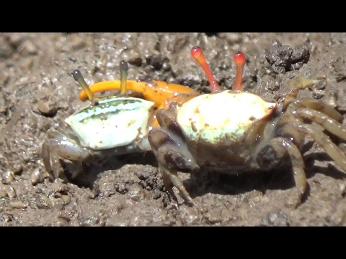 วันอังคาร ที่ 9 กันยายน พ.ศ. 2568:ชาวบ้านในพื้นที่ตำบลท่าข้าม อำเภอปะเหลียน จังหวัดตรัง เผยภาพความสวยงามของ "กองทัพปูก้ามดาบ" ที่ออกมาหากินบริเวณป่าชายเลนเป็นจำนวนมาก โดยมีสีสันที่สวยงามและหลากหลาย ทั้งสีฟ้า สีส้ม สีเหลือง และสีแดง สร้างความตื่นตาตื่นใจให้กับผู้ที่มาเยี่ยมชม