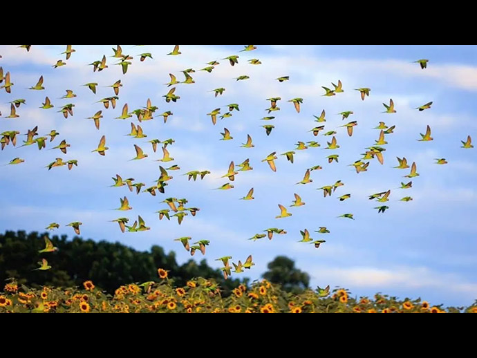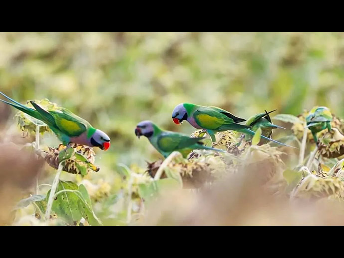 ทางด้าน นายเทวา มหาศาล เจ้าของไร่มณีศร ทุ่งทานตะวันเขาใหญ่ เผยว่า นกแขกเต้าฝูงใหญ่เหล่านี้อยู่ในสายพันธุ์นกแก้ว ชาวบ้านท้องถิ่นจะเรียกกันว่า นกแขกเต้าเป็นแขกประจำของทางไร่ เพราะมักจะพาฝูงบินมาโฉบกินเมล็ดทานตะวันที่ไร่ในช่วงเวลานี้ทุกๆ ปี